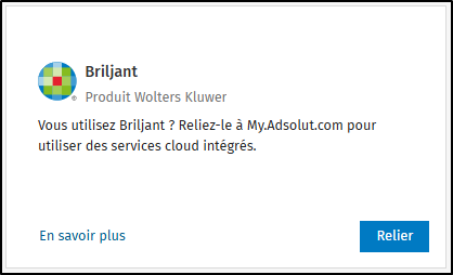 Le lien entre Brilljant et My.Adsolut.com est disponible à partir de la version 447 de Brilljant.