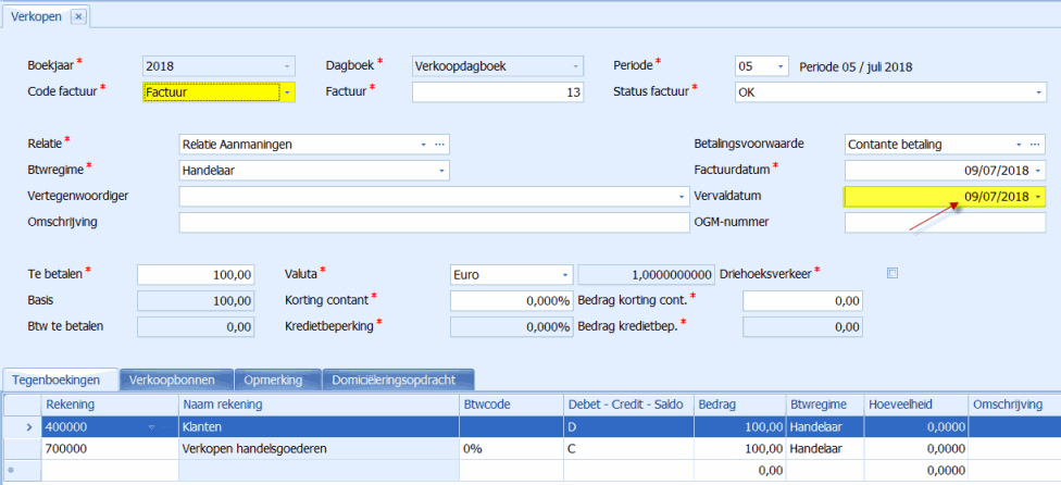 niet verhoogd. De voorbeeldfactuur is vervallen op 09/07/2018. Op 11/07/2018 is ze dus 2 dagen vervallen.
