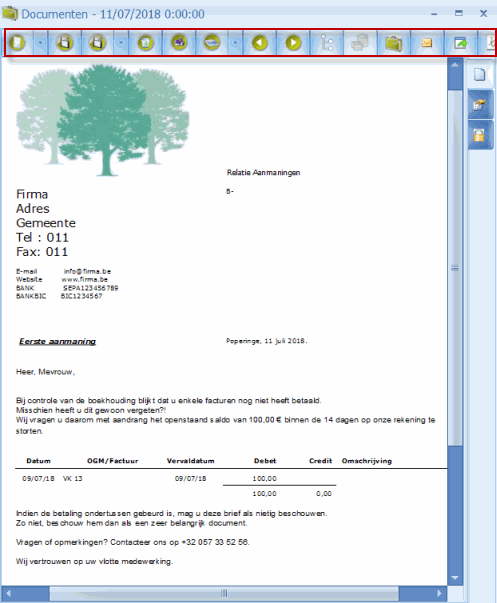 Instellingen en werkwijze aanmaningen in AdsolutHoe een rekeningoverzicht van een relatie aanmaken in Adsolut?Voorbeeld:We baseren ons op onderstaande verkoopfactuur, die vervalt op 09/07/2018