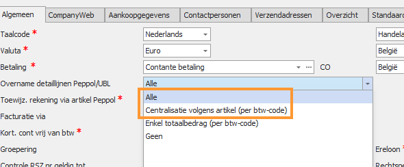 - Centralisatie volgens artikel (per btw-code)