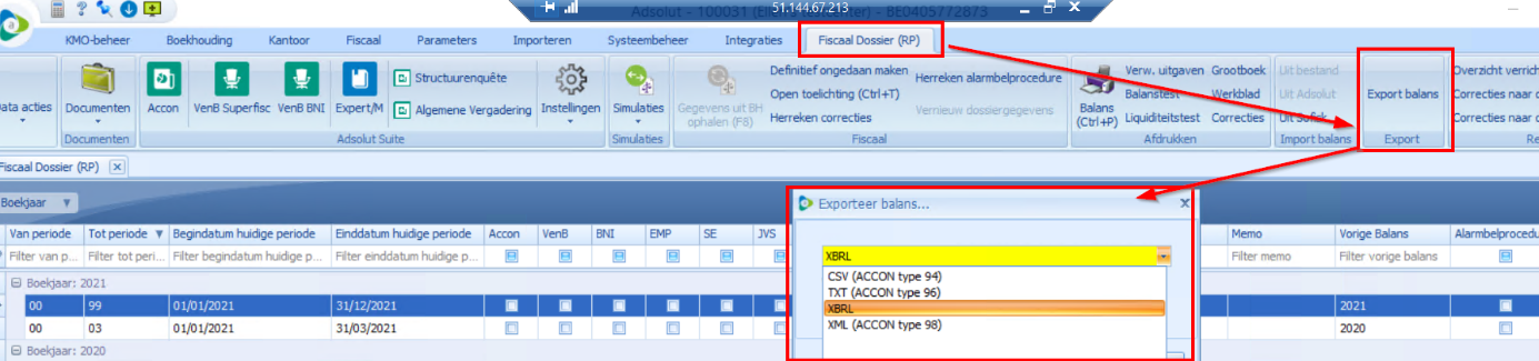 In Adsolut Fiscaal Dossier heeft u de mogelijkheid om de balans te exporteren naar de volgende standaardformaten: