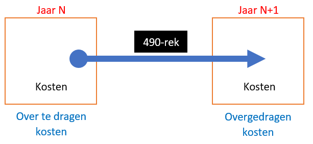 In de boekhouding van Jaar N wordt een kost geboekt, waar de gebruiker aangeeft dat deze kost te maken heeft met het volgende jaar (Jaar N+1).