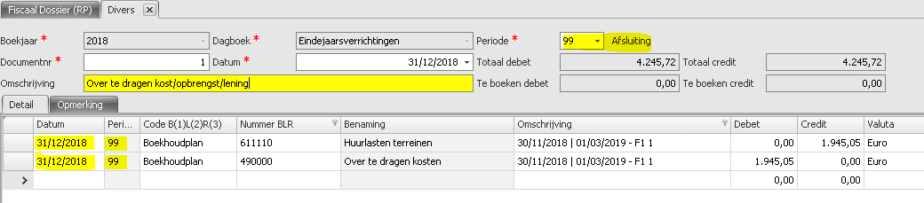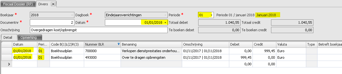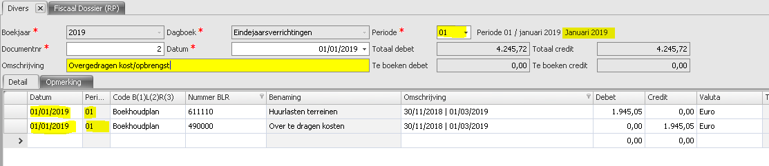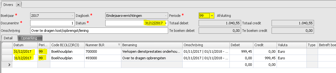 • datum boeking : de laatste dag van het boekjaar wordt gebruikt