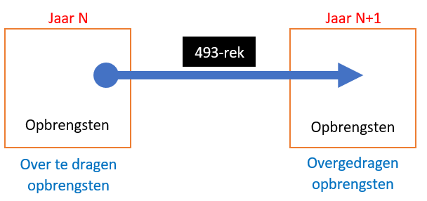 Opbrengsten die zijn geboekt tijdens het boekjaar, maar die geheel of gedeeltelijk worden aangerekend op een later boekjaar. (pro rata verdelen tussen de 2 boekjaren)
