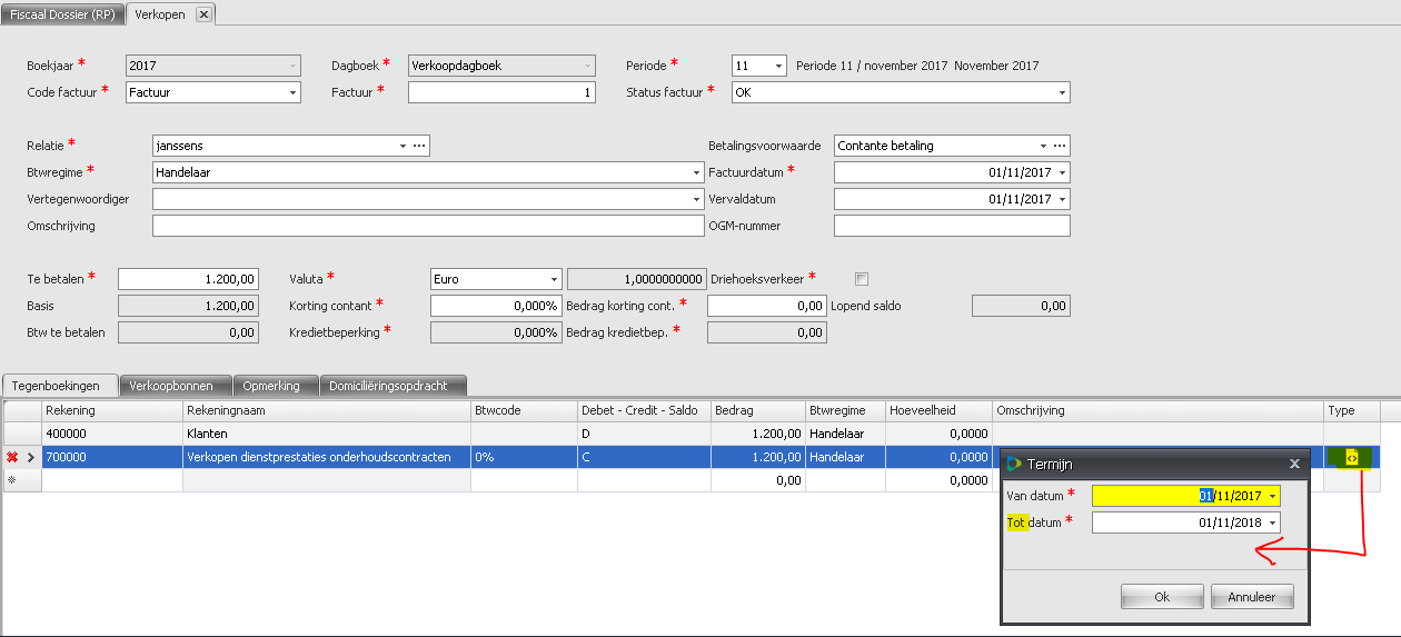 In deze case vinden we de opbrengsten van de onderhoudscontracten terug in het verkoop dagboek van de boekhouding