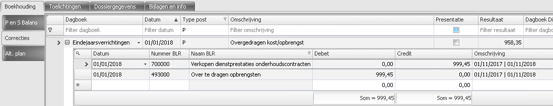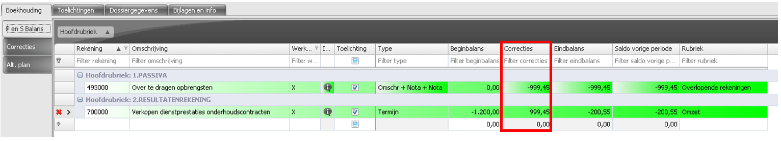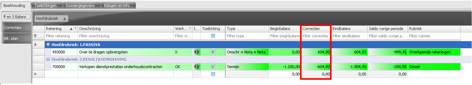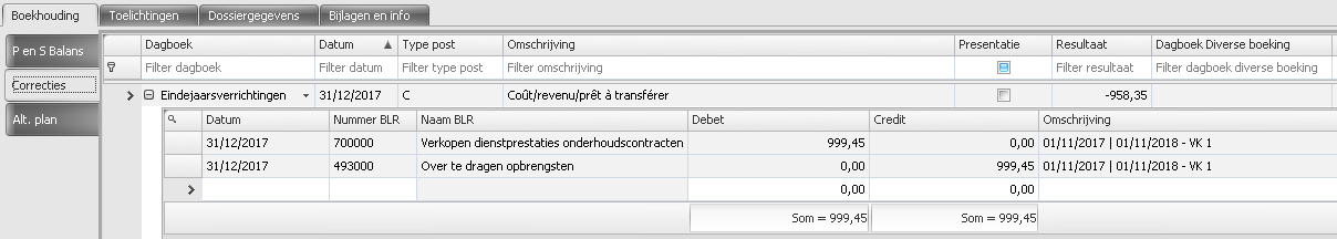 Na het aanmaken van deze correctiepost zullen de details van bovenstaande rekening automatisch toegelicht worden :