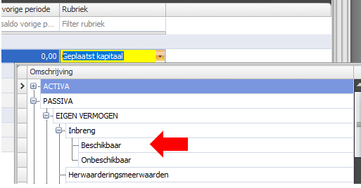 de rekening : 100.000 geplaatst kapitaal --> is gekoppeld aan rubriek "Geplaatst kapitaal" en moet gekoppeld worden aan rubriek : "Inbreng, Beschikbaar".