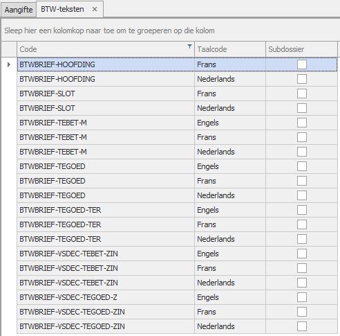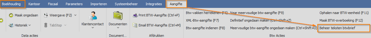 - Ga naar Boekhouding > BTW > Aangifte > Beheer teksten btwbrief
