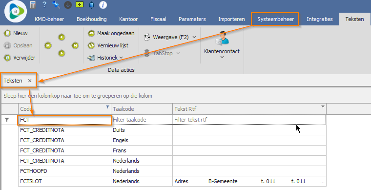 - Ga naar Systeembeheer > Instellingen Logistiek Beheer > Teksten