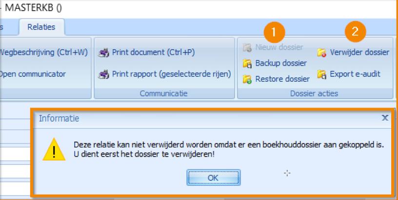 Indien op de relatie reeds een dossier bestaat, dan kan de relatie niet verwijderd worden.