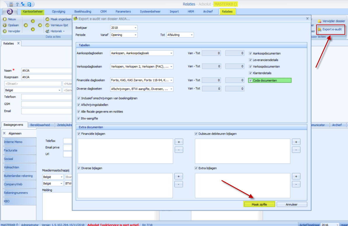 - Selecteert u boekjaar 2018, dan wordt de factuur meegestuurd en de betaling niet.