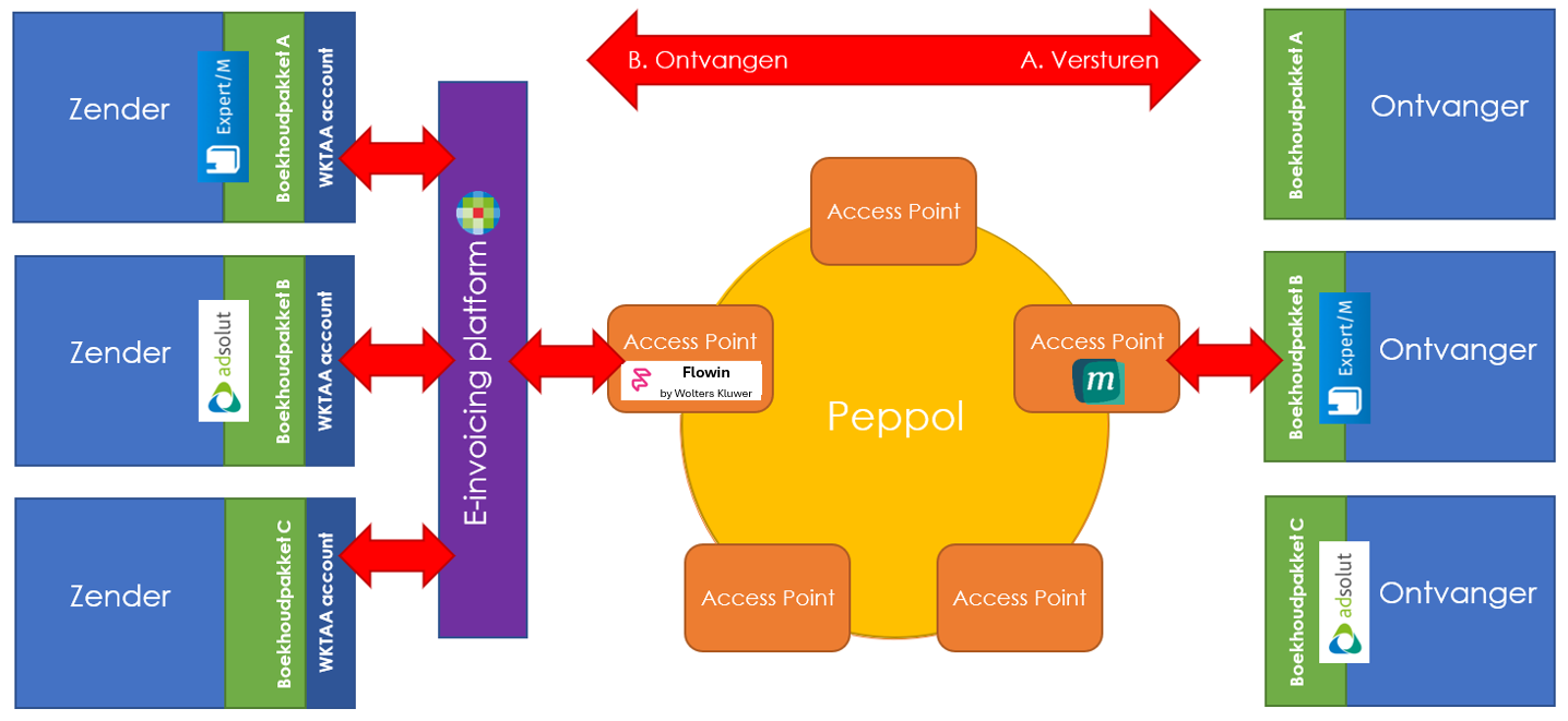 Peppol Access Points verbinden gebruikers met het Peppol-netwerk en wisselen elektronische documenten uit op basis van de Peppol-specificaties. Zenders en ontvangers zijn vrij om hun favoriete Access Point-provider te kiezen om verbinding te maken met alle Peppol-deelnemers die al op het netwerk zijn aangesloten.