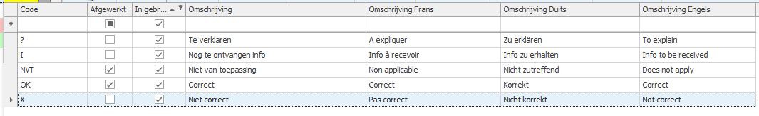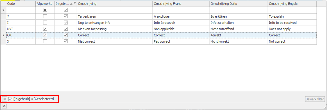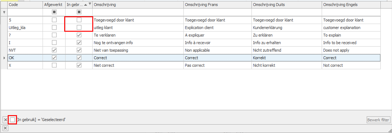 Het veld "In gebruik" duidt aan of de werkbladcode standaard in de zoeklijst moet worden getoond.