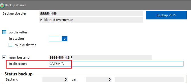 In directory een locatie opgegeven waar Briljant geen rechten heeft om het zip-bestand aan te maken.