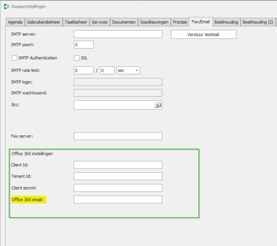 Opgelet: Indien u een e-mailadres invult in het veld "Office 365 email", zal Adsolut bij elke verzending dit adres gebruiken als afzender. Wenst u dit niet, dan vult u best de e-mailadressen aan in de medewerkersfiche of in de dagboeken (op subdossierniveau).