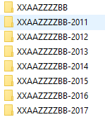 De naam van de mappen waaronder alle bestanden staan moet gelijk zijn aan de naamgeving van de bestanden die u eronder kan vinden. In het onderstaande geval krijgt de map de naam XXAAZZZZBB