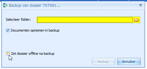 1. Het dossier werd offline gehaald tijdens het nemen van een back-up.