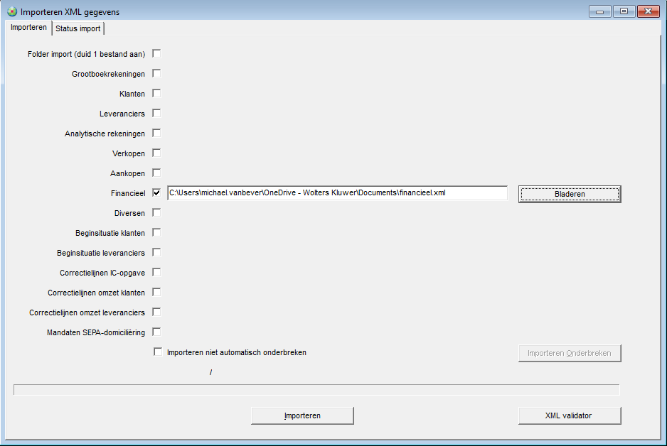 3) Lees dit bestand dan in, in een ander dossier, ga hiervoor naar "Extra" > "importeren externe applicaties" > "XML - Expert /M"