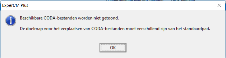 1. U wenst dat de CODA en eventuele pdf-bestanden na verwerking in Expert/M blijven staan in dezelfde folder als vóór de verwerking. Ook al impliceert dit dat Expert/M deze bestanden ook na de verwerking ervan steeds opnieuw voor verwerking zal aanbieden.