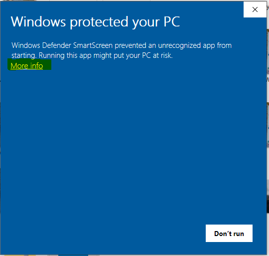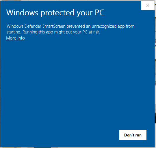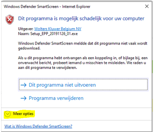 Oplossing:Situatie 1 (blauw scherm van Windows Defender SmartScreen):