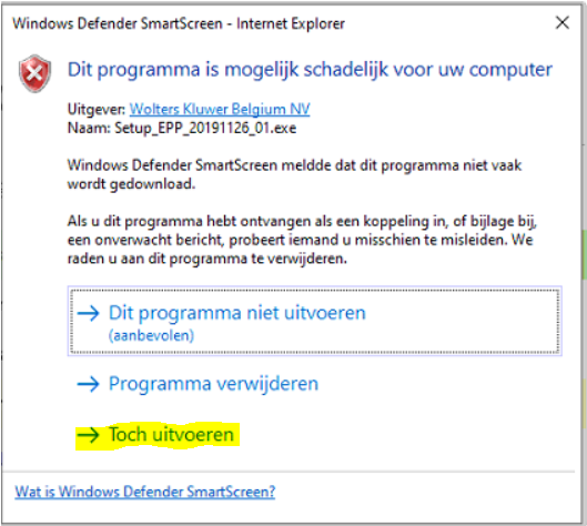 - Selecteer de zichtbaar geworden optie "Toch uitvoeren" zodat u de update van Expert/M kan installeren.