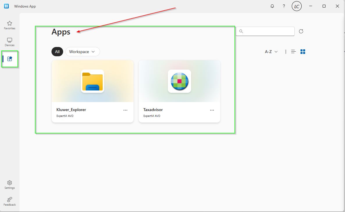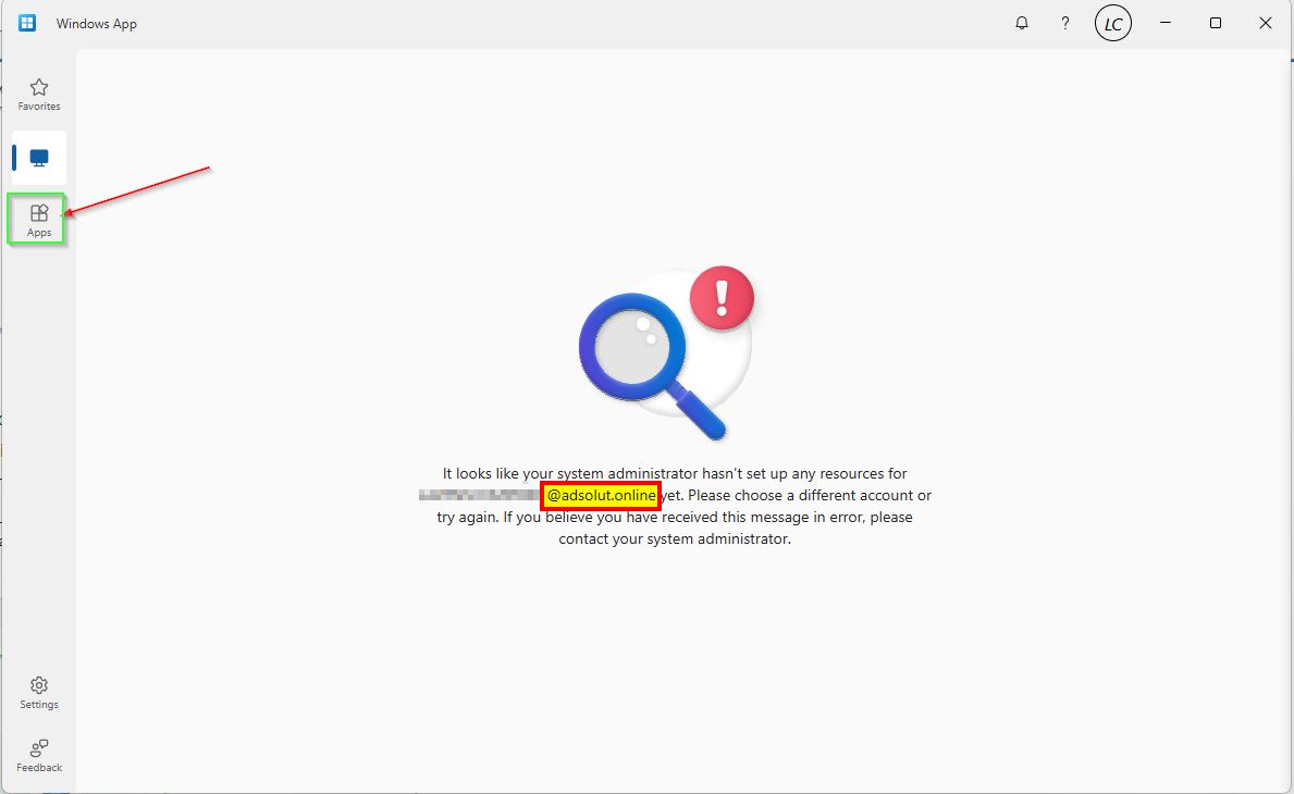 Controleer eerst of je in Windows App in de linkerkolom de optie Apps ziet staan: