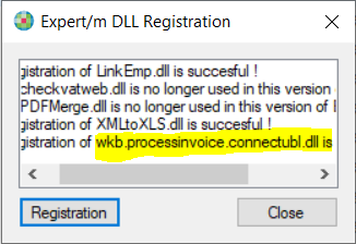 2. Open de folder "?:\Kluwer\Finfisc\Epp" en voer het bestand "Expert/MReg.exe" als administrator uit (Met de rechtermuisknop klikken op het bestand en kiezen voor 'Uitvoeren als Administrator'). Deze tool zorgt voor de registratie van het voor de elektronische facturatie noodzakelijke bestand "wkb.processinvoice.connectubl.dll" (Dit bestand is terug te vinden in de folder '?:\Kluwer\Finfisc\KluwerExchange\UBL 2.0\')