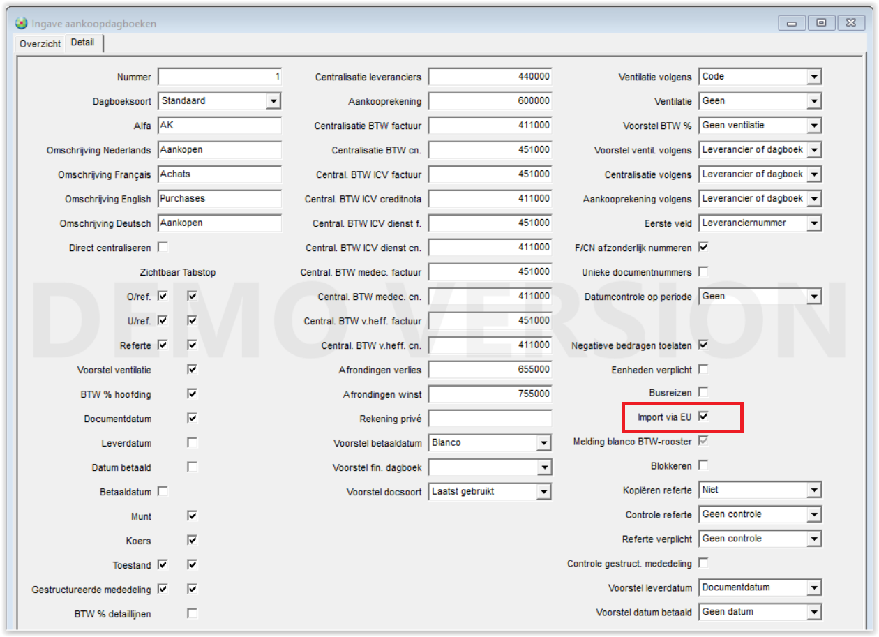 5. Vink het veld ‘Import via EU’ aan.