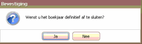 Nadat de rekeningen overgedragen zijn volgt er een melding met de vraag of het boekjaar al definitief afgesloten moet worden: