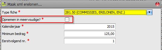- Zet een vinkje bij 'Opnemen in meervoudige?' nadat er op 'Maak Belcotax-XML' is geklikt