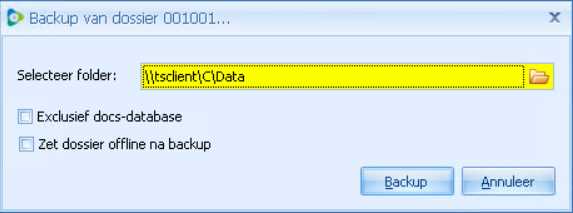 Voor kleinere dossiers kan je de backup ook onmiddellijk opslaan op de lokale c:schijf.