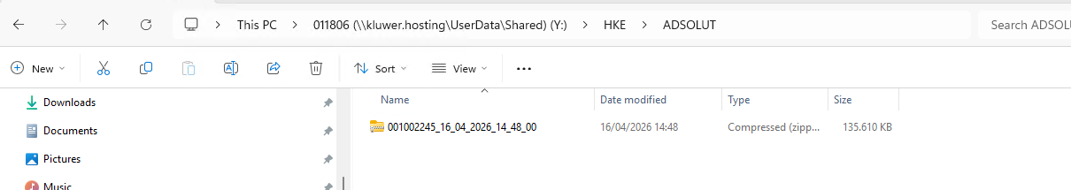 Wij raden aan om de Adsolut-sessie actief te houden zolang de back-up loopt, of eventueel de documenten niet mee op te nemen in de back-up (deze hebben het grootste aandeel in de backup).