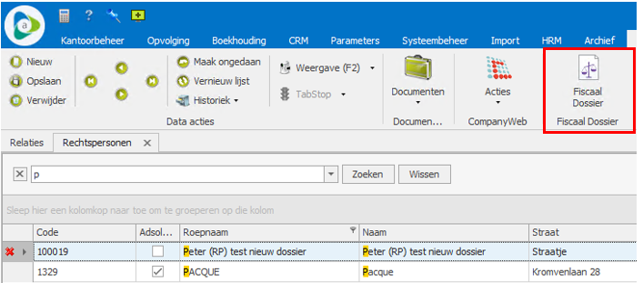 Stap 1 : klik in Kantoorbeheer in de module "Relaties" op een van de volgende knoppen: