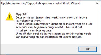 - Jaarverslag werkt alleen voor jaarrekeningschema's vanaf 1/1/2016. Dit is de reden waarom bij opstart deze boodschap kan verschijnen.
