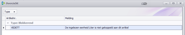 Voorbeeld: Men heeft een eenheid Liter ingelezen voor een artikel dat geen eenheid Liter heeft.