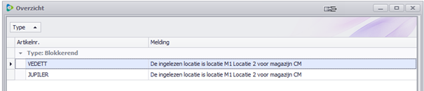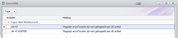 Voorbeeld: men heeft voor bepaalde artikelen een magazijn ingegeven met een locatie van een ander magazijn.
