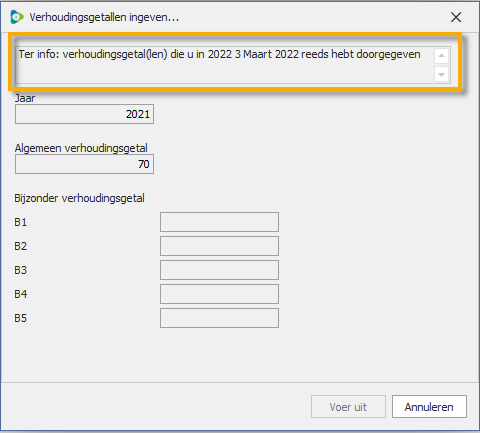 Hier is het mogelijk het Algemeen verhoudingsgetal of meerdere Bijzondere verhoudingsgetallen in te geven.