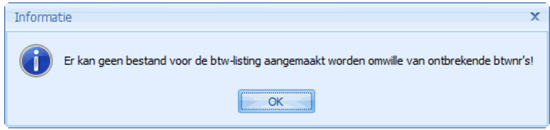 Indien er relaties met ontbrekende btw-nummers zijn, verschijnt volgende melding: