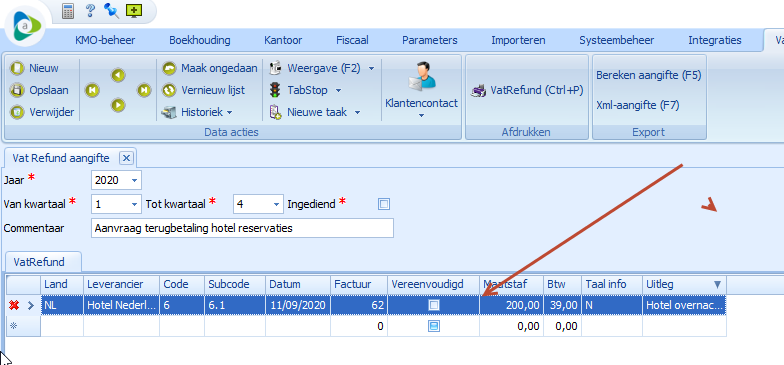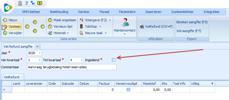 Bij het opslaan van de boeking worden ook de VAT refund gegevens bewaard.
