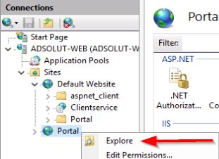 3. Klik met de rechtermuisknop op de website "portal" en navigeer naar "verkennen".