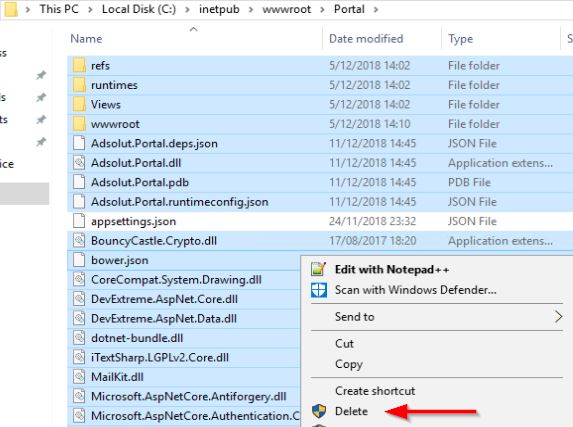 4. Verwijder alles behalve "appsettings.json".