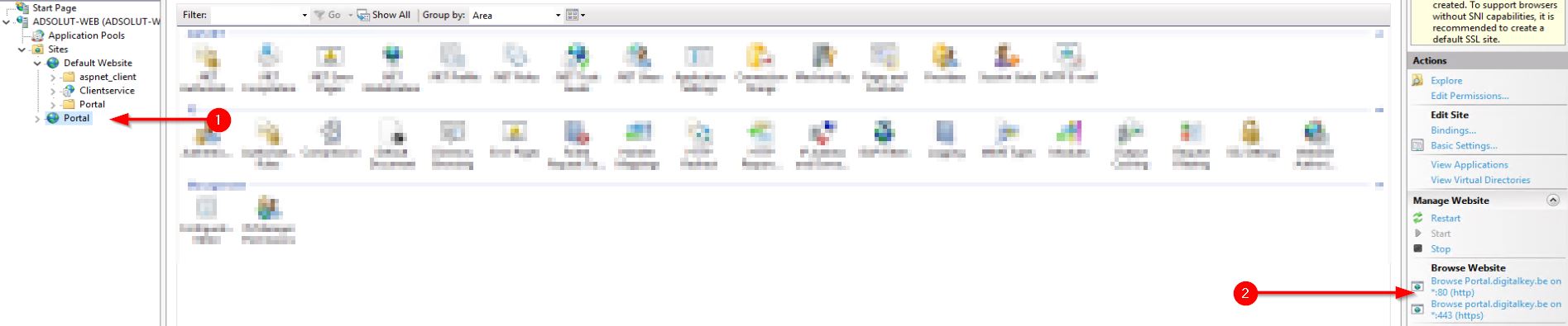13. Druk op de website "portal" en daarna op "Browse..." rechts in de IIS management.