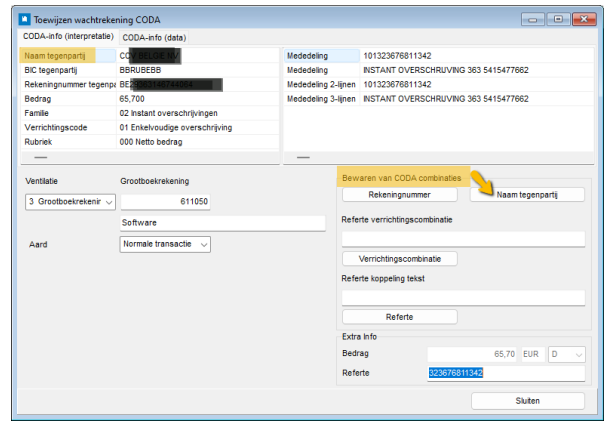 Je kan de koppeling ook handmatig ingeven, op voorwaarde dat je de naam van de tegenpartij uit het CODA-bestand kent.