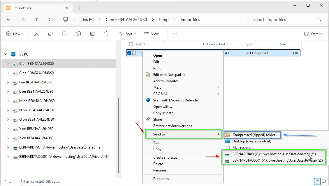 Bestanden importeren naar uw online locatie (Y: of Z:)