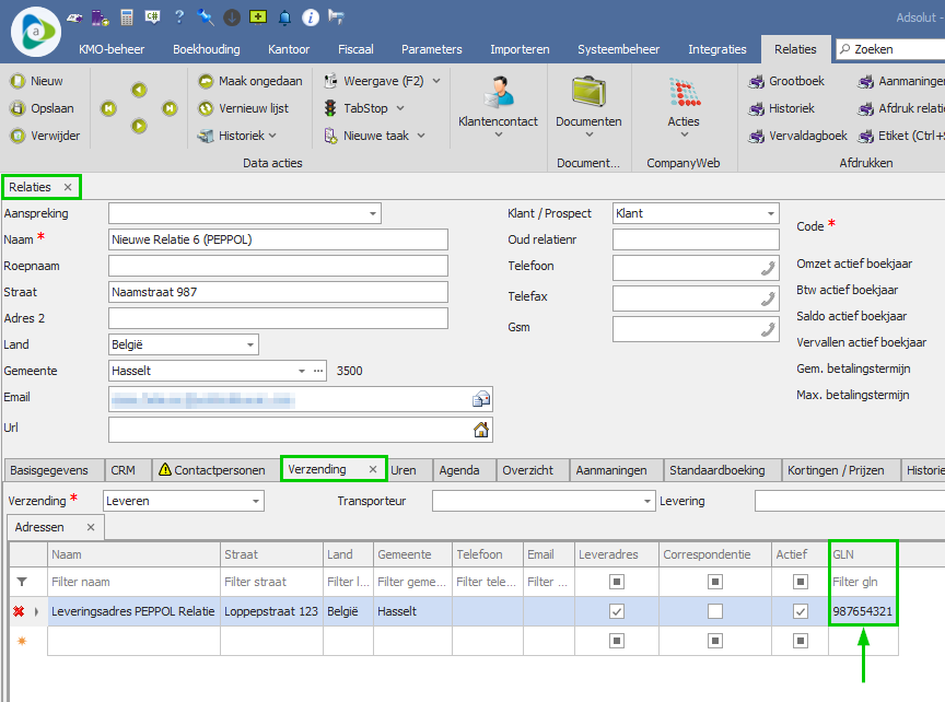 Vanaf Adsolut versie 25.8.0 is het mogelijk om Peppol-facturen te versturen op basis van het GLN-nummer van de ontvanger.