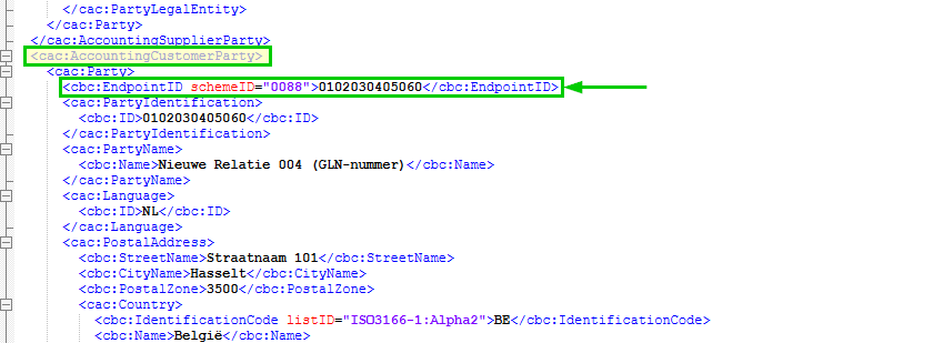 In de Peppol XML wordt het GLN-nummer als Peppol ID opgenomen (prefix 0088).