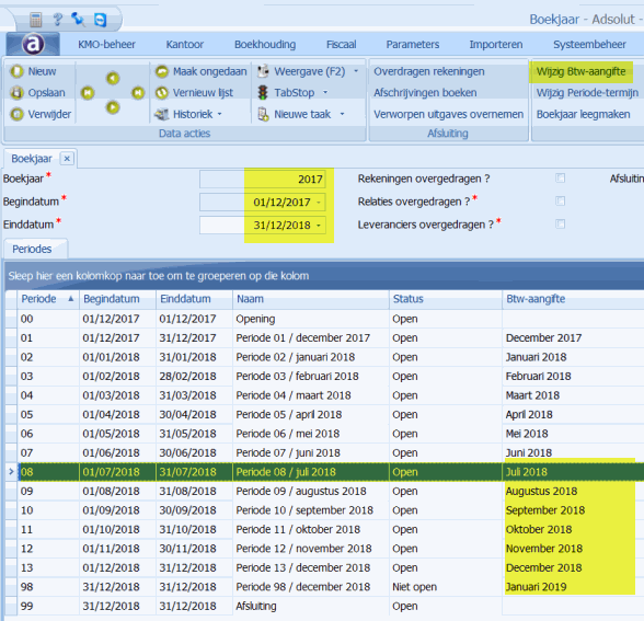 - Dubbelklik op het boekjaar waarin u de aanpassing wenst door te voeren. (In dit voorbeeld: 2017)