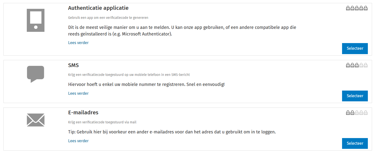Als gebruiker kun je kiezen tussen de volgende opties van autorisatie: