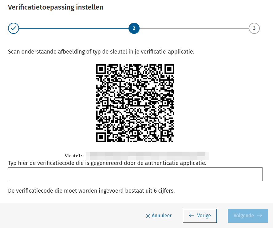 Kies je voor een externe autorisatie, dan moet je bij de autorisatie een QR-code scannen en een veiligheidscode invullen.