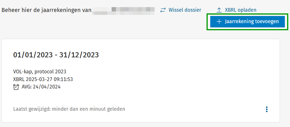1. Open het dossier in Adsolut Jaarrekening en klik op de knop Jaarrekening toevoegen.